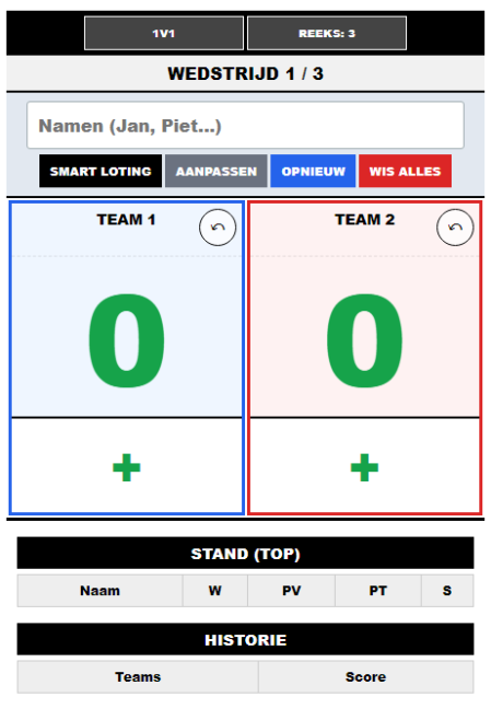 Je hebt geen ingewikkelde apps of accounts nodig: open het scorebord in je browser en je kunt direct beginnen. Het werkt op telefoon, tablet en laptop, zodat je het scorebord eenvoudig naast het veld kunt neerzetten of in de hand kunt houden.
